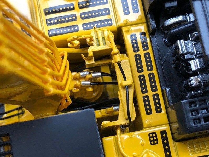 La peinture jaune vibrante de Komatsu est appliquée sans faille, ornée d'autentiques marques Komatsu et d'autocollants de sécurité qui sont fidèles à la machine d'origine.Des conduites hydrauliques qui longent la poutre aux rampes et échelles miniatures.Ce dévouement à la précision s'étend également au châssis, qui reflète avec précision le cadre robuste de la voie et l'engrenage de roulement, essentiels pour les performances lourdes.Chaque élément est soigneusement considéré et miniaturisé pour créer un modèle à l'échelle cohérente et très précise.