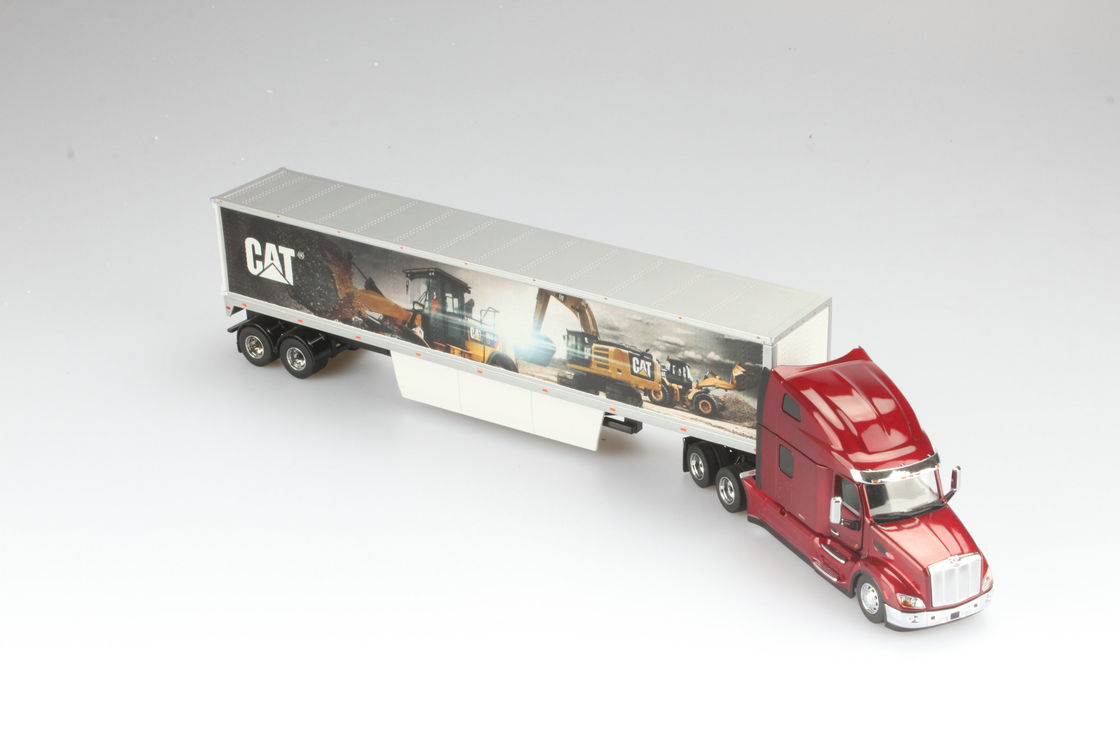 | Peinture et autocollants | Authentique peinture rouge foncé, peinture murale de Caterpillar sur une remorque sèche, autocollants détaillés, rayures de réglementation DOT |